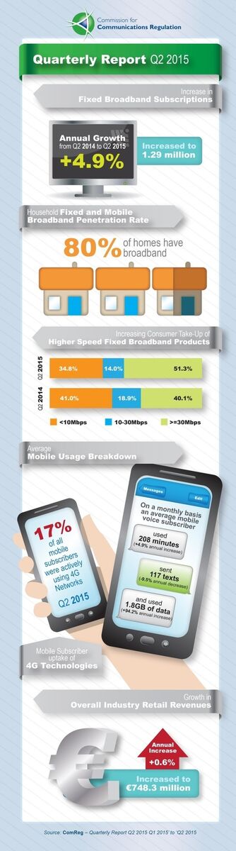 ComReg’s latest quarterly report points towards an increase in fixed broadband subscriptions which are now almost 5% higher than in the same period last year.