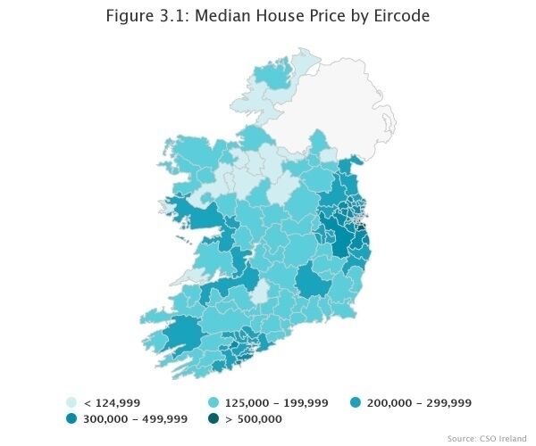 It is followed by Castlerea, County Roscommon (F45) at €77,750 and Belturbet, County Cavan (H14) at €89,000.