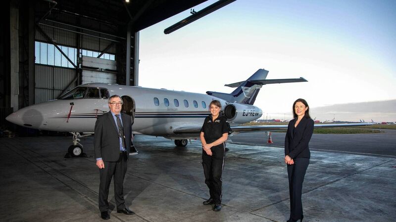 Ray Mills, CEO Gainjet Ireland pictured with Suzanne O'Neill, Critical Care Flight Nurse from Newtown Nenagh Co Tipperary and Mary Considine, CEO Shannon Group. Picture: Arthur Ellis.