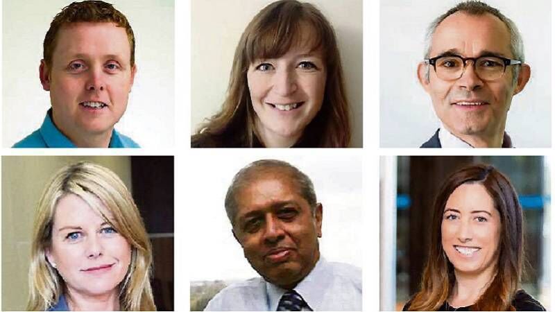 New roles: (top row, left to right) Dr David Wall, Cat Anderson, Neil Wisdom; (bottom row) Eileen O'Mara, Prof Subrata Ghosh, Lisa Finnegan.