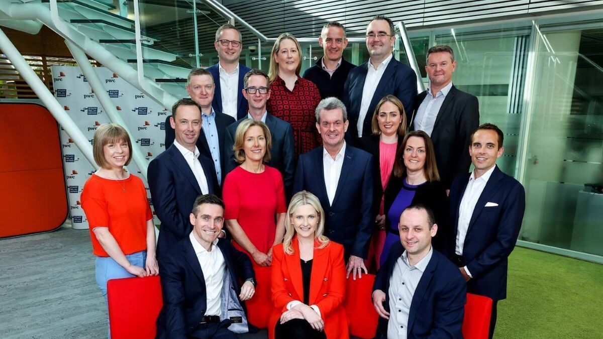 Pictured with Feargal O’Rourke, PwC Ireland managing partner (centre), are PwC's new partners: (sitting): Aidan Lucey, Mairead Harbron and Paul Martin. (standing): Marie-Louise Gallagher, James McMenamin, Ciaran Cunningham, Thomas Sheerin, Seán Martin, Danielle Cunniffe, Darrelle Dolan, Robert Costello, John Dwyer, Ally McCaffrey, Áine Brassill, Leonard McAuliffe and Kieran Little.