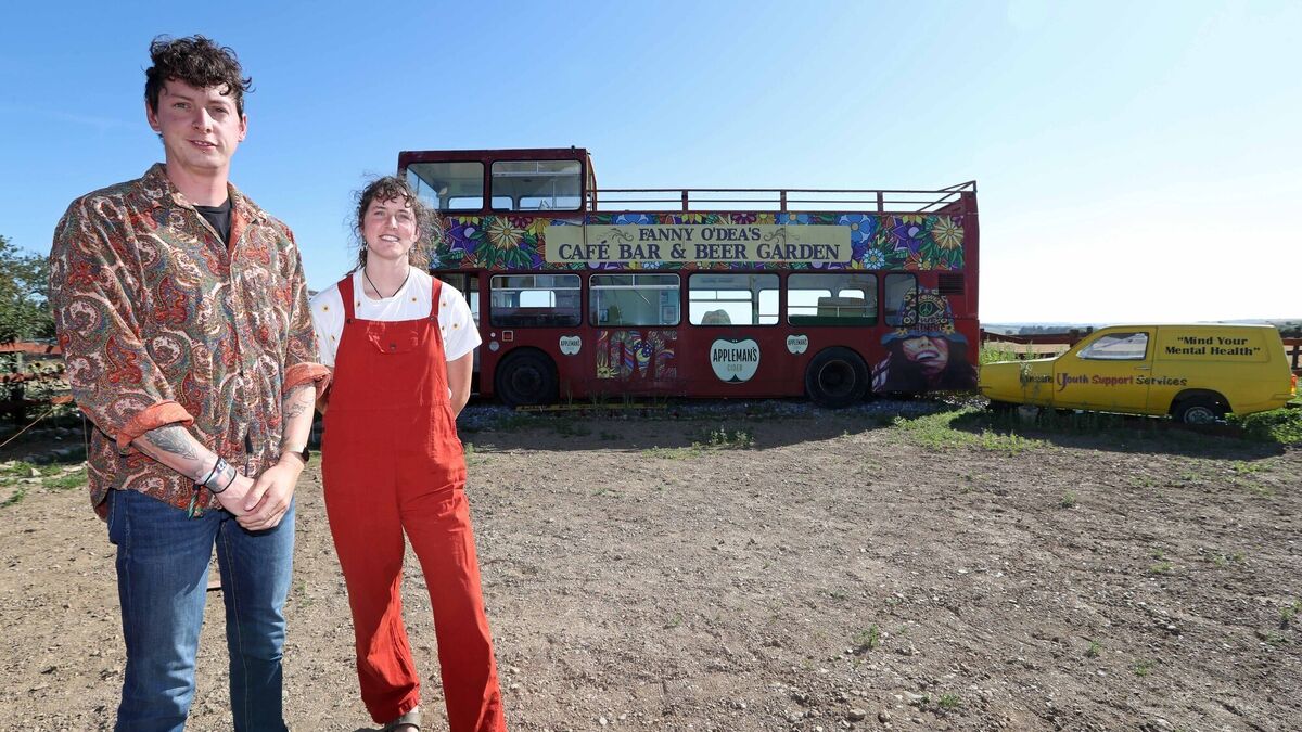 Thomas and Rachel McCarthy, with an upcoming bus project in the background. Picture: Jim Coughlan.