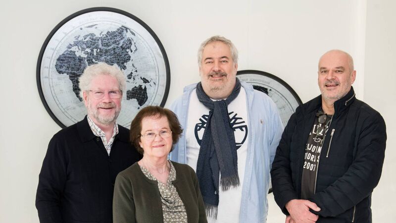 Brian & Rita O'Kane, founders of Oak Tree Press with Axel Neefs and Pierre Delroisse, Belgian founders of the Corporate Group. Photo: Rob Lamb