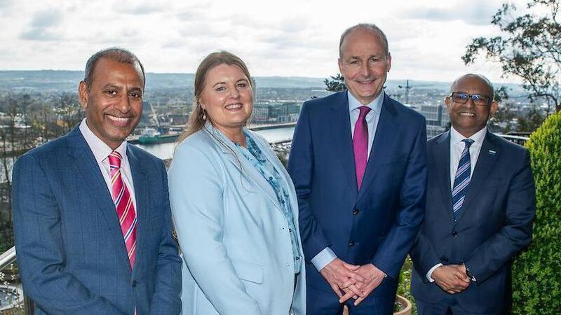 Viken Chinien, head of department of enterprise risk management at DNV with Janet O'Shea, DNV operations director in Ireland, Taoiseach Micheál Martin, and Hari Vamadevan, executive vice president and regional director at DNV. Picture: John Allen