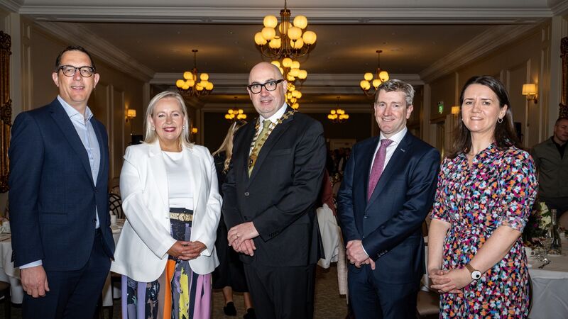 Conor Healy, CEO, Cork Chamber, Eibhlín Gleeson, CEO & Artistic Director, Cork Opera House, Rob Horgan, President, Cork Chamber, Mark Barrett, Partner, RDJ LLP and Karen O'Donoghue, Managing Director, Irish Examiner pictured attending the Cork Chamber Business Breakfast at the Metropole Hotel where Eibhlín Gleeson, CEO & Artistic Director, Cork Opera House was the keynote speaker. Picture Chani Anderson