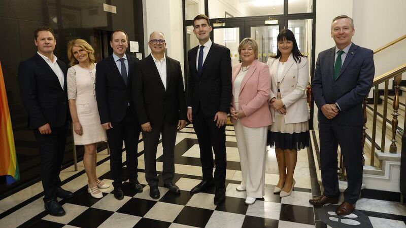 Nathan Cullen, IBM Ireland country general manager with Mary Buckley, IDA Ireland; John Cummins TD; Ross Mauri, IBM Mainframe general manager; Minister Jack Chambers; Mary Butler TD, IDA Ireland development manager Anne-Marie Tierney le-Roux, and Brian McGee IDA Ireland South East regional manager at the announcement that 75 new jobs will be created by IBM in Waterford. Picture: Julien Behal