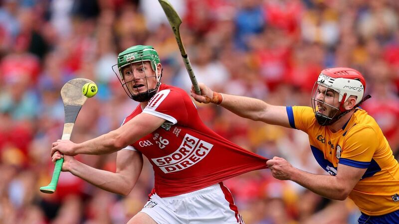 Clare's Conor Leen makes a last-gasp intervention to stop Cork's Robbie O'Flynn equalising in the 2024 All-Ireland hurling final. Strong sales of Cork and Clare jerseys helped sport brand O’Neills to record pre-tax profits of €3.4m last year. Picture: James Crombie, Inpho