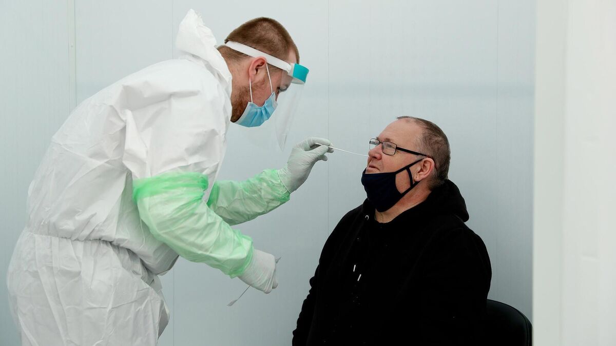 Lorry driver George Mc Glashan from Dungannon Northern Ireland being swabbed at the RocDoc Dublin Airport facility for Covid-19. Picture: Maxwell's