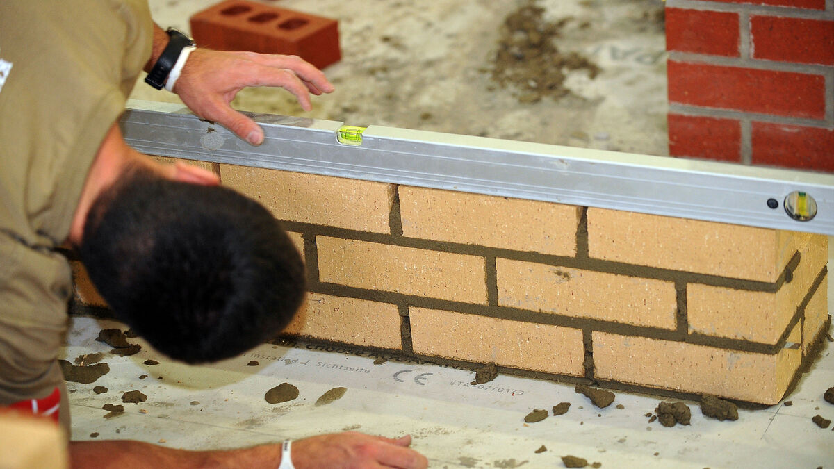 A trainee bricklayer at World Skills London 2011 exhibition.