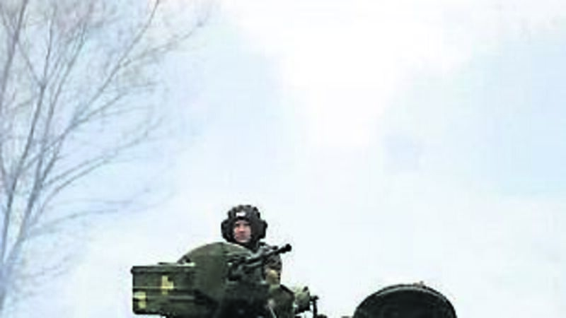 Ukrainian servicemen ride on tanks towards the front line with Russian forces in the Lugansk region of Ukraine. Picture: GettyÂ