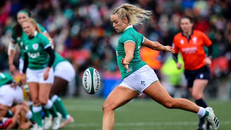 Stacey Flood kicks downfield during Ireland's match against Italy in the TikTok Women's Six Nations Championship match in Musgrave Park, Cork. Picture: INPHO/Ben Brady