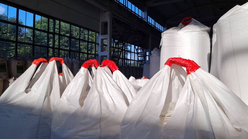 White jumbo-bags with chemical fertilisers: Rice farmers are particularly vulnerable to soaring costs.