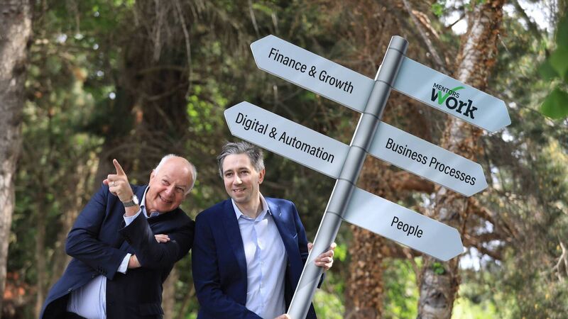 Businessman Bobby Kerr and Minister of Further and Higher Education, Simon Harris, promoting the MentorsWork programme, hosted by the Small Firms Association and Skillnet Ireland.