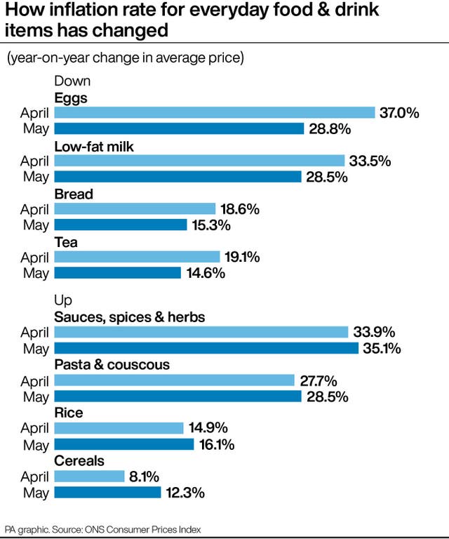 Consumers saw relief on energy prices, which dropped 5.6% after last year’s crisis, while food price inflation was up 11.7%, easing from 12.5% in May.