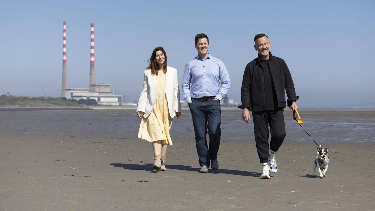 Ibec’s KeepWell manager, Patrick Haslett withbroadcaster and health coach Clare McKenna and TV presenter and author Brendan Courtney for a stroll with Brendan’s dog, Nancy Drew, ahead of National Workplace Wellbeing Day on April 30. Picture: Conor McCabe Photography.