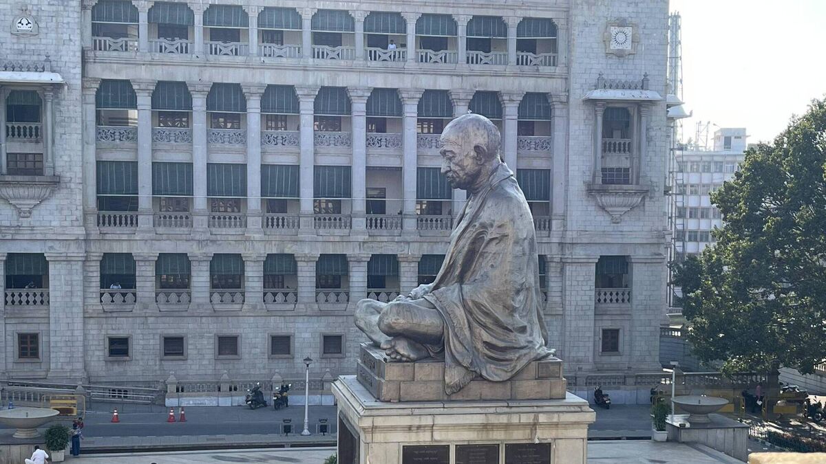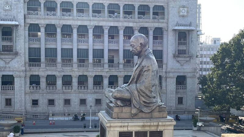 A statue of Mahatma Gandhi beside the Vidhana Soudha parliament building in Bangaluru, India, the seat of the Karnataka Legislative Assembly. Picture: Paul McCarthy