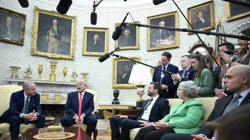 Taoiseach Micheál Martin and US President Donald Trump in their high-stakes Oval Office meeting last year. Picture: Mandel Ngan