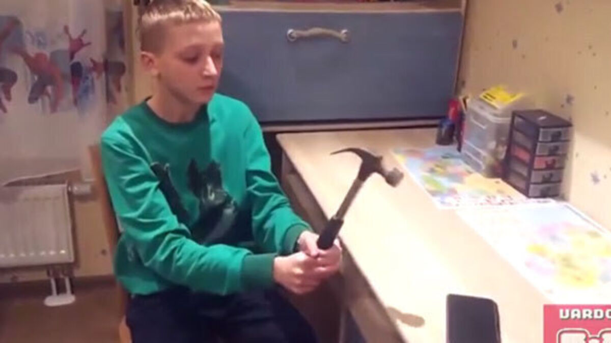 Kid tries to prove how tough his phone case is, you can imagine what happens next