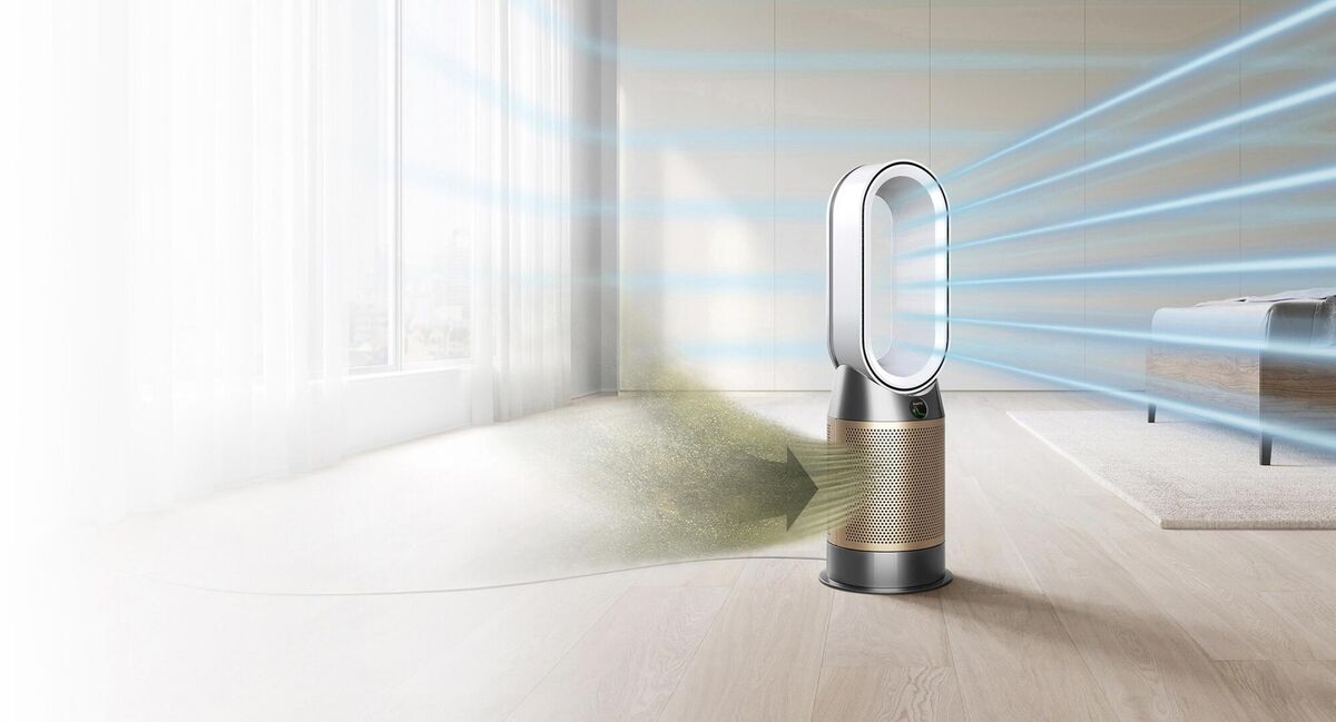The Dyson Hot + Cold Formaldehyde air purifier has sensing technology that can filter particles as tiny as 0.1 micros as well as destroy dangerous VOCs including formaldehyde.