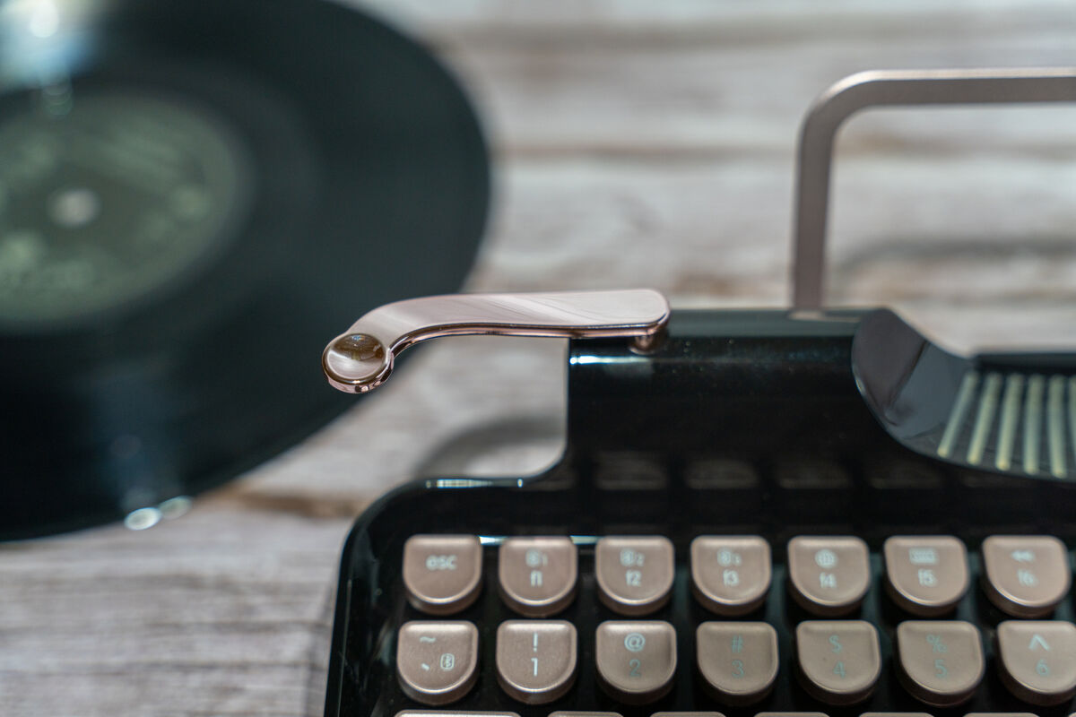 It features a knob on the right which was used to advance the paper on traditional typewriters — on the KnewKey it’s used for media volume control. The level on the left is for switching between USB and Bluetooth modes. And, there’s a stand on the back that would have been used to hold paper but on the KewKey acts as a stand for a phone or small tablet — Rymek doesn’t recommend anything bigger than an iPad Air.