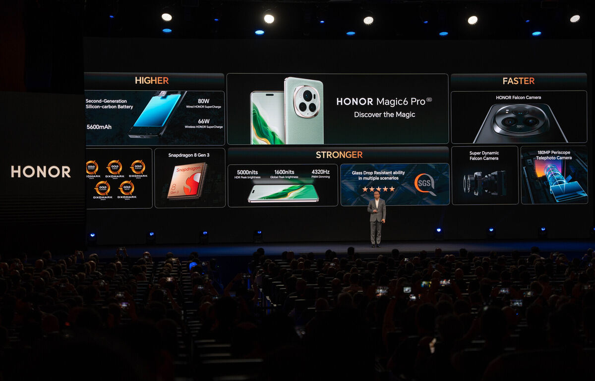 The highlight of Honor's presentation was the unveiling of the Honor Magic6 Pro, the latest addition to its Magic Series lineup, boasting cutting-edge advancements in photography, display technology, and performance. The device is powered by MagicOS 8.0 on top of the Android 14 operating system and infused with Honor's platform-level AI, which introduces innovative features such as the industry's first intent-based user interface.