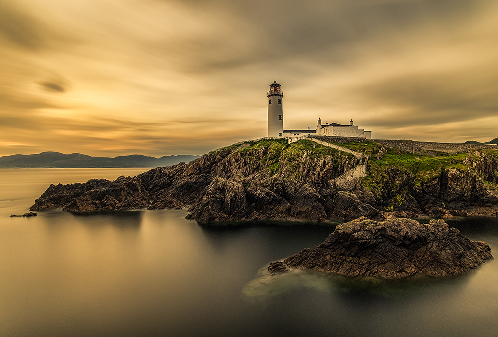 "With my family we went on holiday in County Donegal. Our accommodation was about 5km from Fanad Lighthouse. One morning I went to Fanad Lighthouse to get a picture at sunset. It was dull morning. I decided to take a picture of very long exposure of 20 minutes and to convert later the picture in black and white. After a few minutes the sky opened and the sun showed. After a few seconds the sun disappeared again. In the next few minutes the sun started showing and hiding. I realised, that to prevent the picture from over-exposing, I need to reduce the the exposure time. So I reduced the time to seven and a half minute. The picture is final result of it'"
