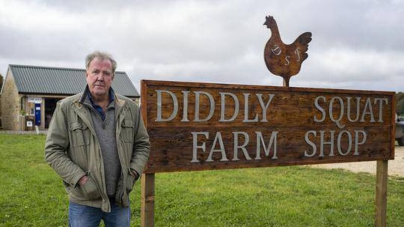 Jeremy Clarkson outside the Diddly Squat Farm Shop on his farm.