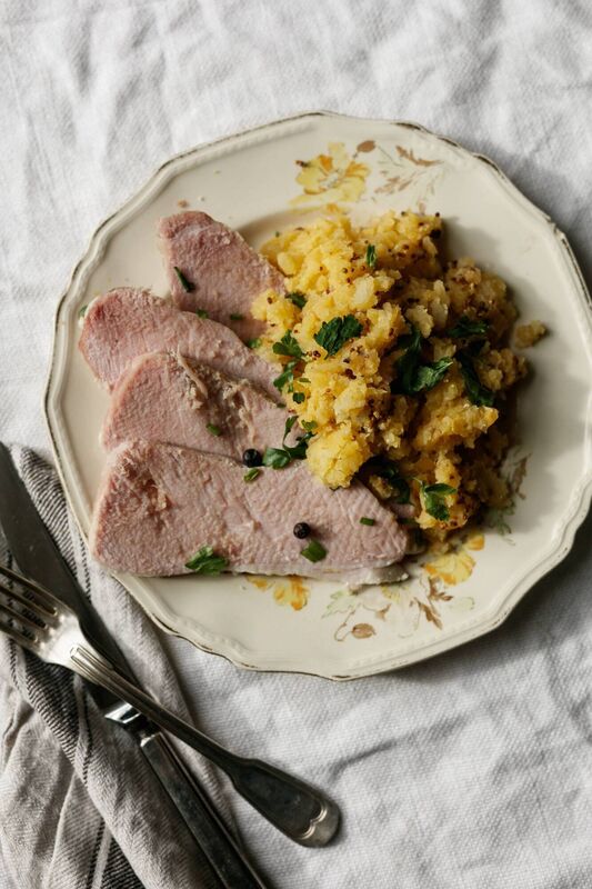 The mash is a satisfying combination of sweet parsnip and warm, slightly spicy Dijon, perfect as an accompaniment to ham, pork, game and other wintry, hearty meats.