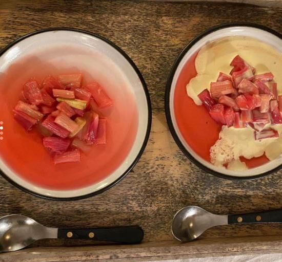 I’ve just had my first rhubarb of the year, a sublime bowl of roast rhubarb drizzled with Jersey pouring cream.