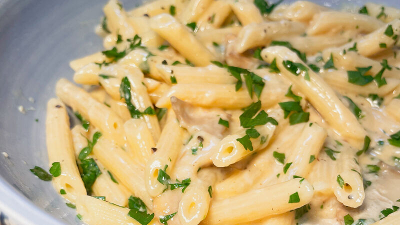When the kids burst in the door starving, this pasta dish ticks all the boxes. My two absolutely love it and it always fills the gap until dinnertime. You can use any pasta they prefer, and the rest of the ingredients are simple staples you’ll already hav