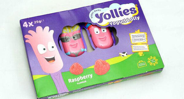 The four 25g lollies are made from firm yogurt pressed into moulds which come apart a bit when one is broken off, so packaging could be better.