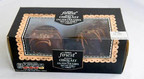 The chocolate pudding has a salted caramel centre and is topped with more caramel for the sweet-toothed. One is enough for two people. Must be microwaved to heat up.