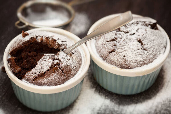 Bake for a quarter of an hour, until the top has risen slightly but the centre is still soft.