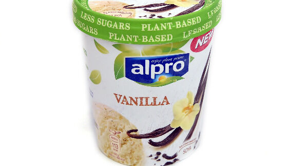Suitable for vegetarians, this soy-based icecream has all plant-based ingredients, including soluble gluco fibre, sugar, 6.1% hulled soya beans, rapeseed and shea fats.