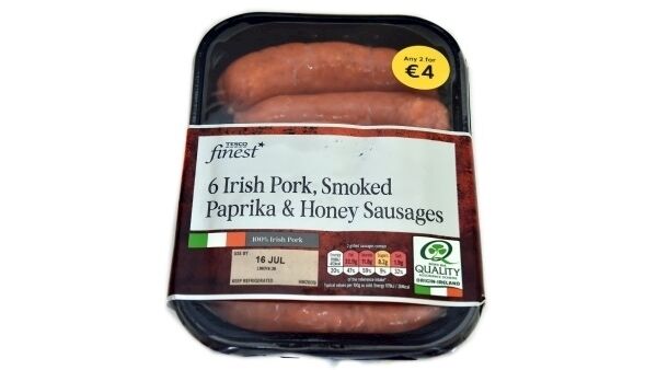 Tesco Finest Irish Pork, Smoked Paprika & Honey Sausages 454g €2.60