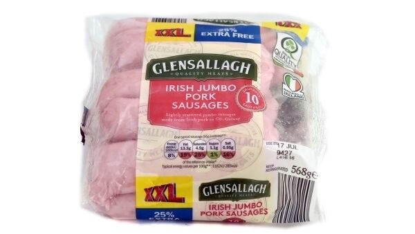 Lidl Glensallagh Irish Jumbo Pork Sausages 568g €1.69