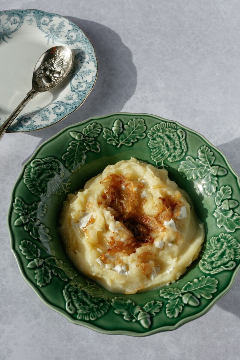 Mashed Potato with Soft Irish Goats Cheese and Caramelised Onion