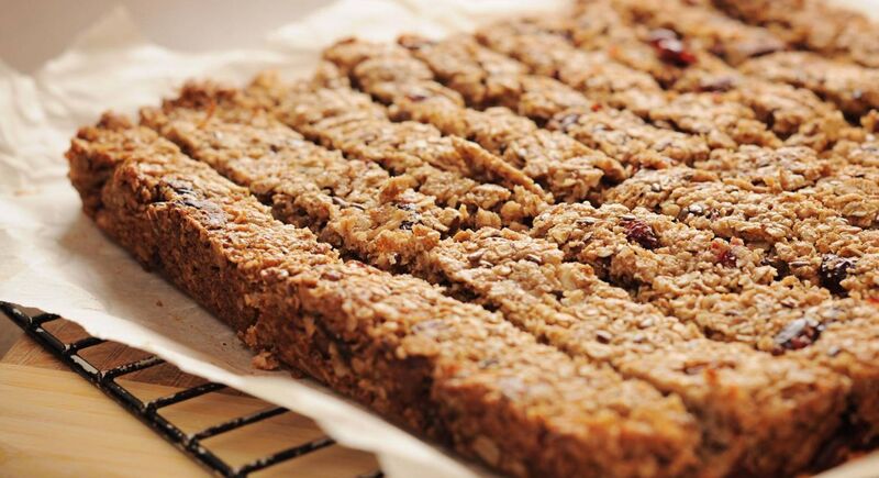 Very gently heat the syrup and nut butter and pour this into the other ingredients, add in the cranberries.