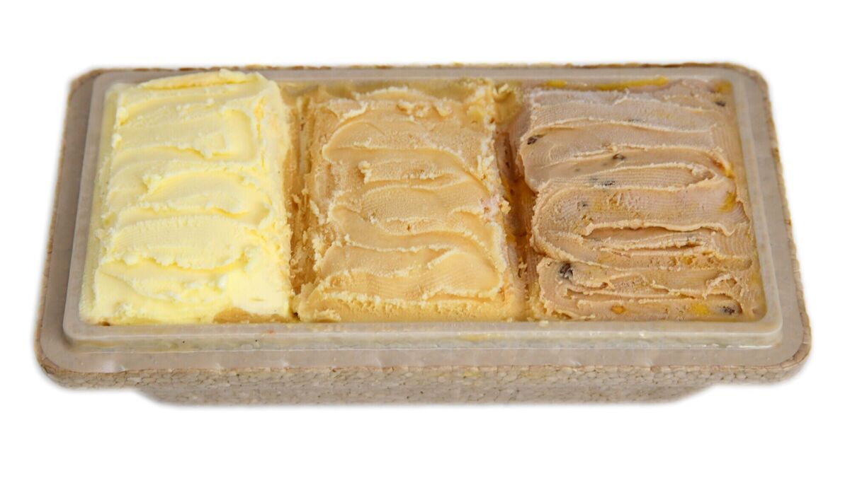 We chose peach sorbet, vanilla ice cream, honeycomb ice cream from a large range that includes blue bubblegum – we didn’t dare. All three were a hit with all tasters, the adults favouring the peach sorbet, the children the crunchy honeycomb, but all in agreement it was superb ice cream. Natural and light, not too sweet. ‘Almost healthy tasting’ was the cry. In a thermal compostable box.