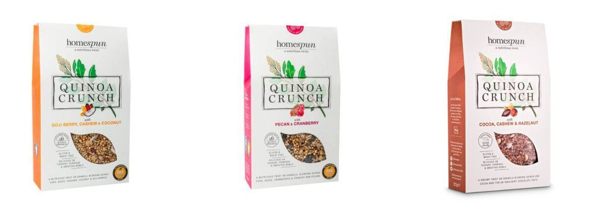 In 2015, Sheehan made the leap to make her hobby a career, making quinoa-based granola from her kitchen and selling it at her local farmers' market. The business, named Homespun because it quite literally “was spun out of our home,” was an instant success, with customers flocking back week on week to stock up on her blend of nuts, seeds and quinoa.
