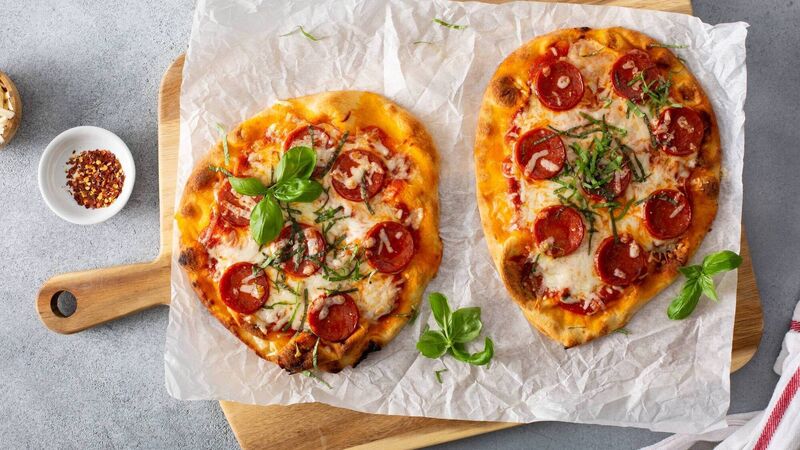 Make any night pizza night with these quick and easy naan bread pizzas.Â