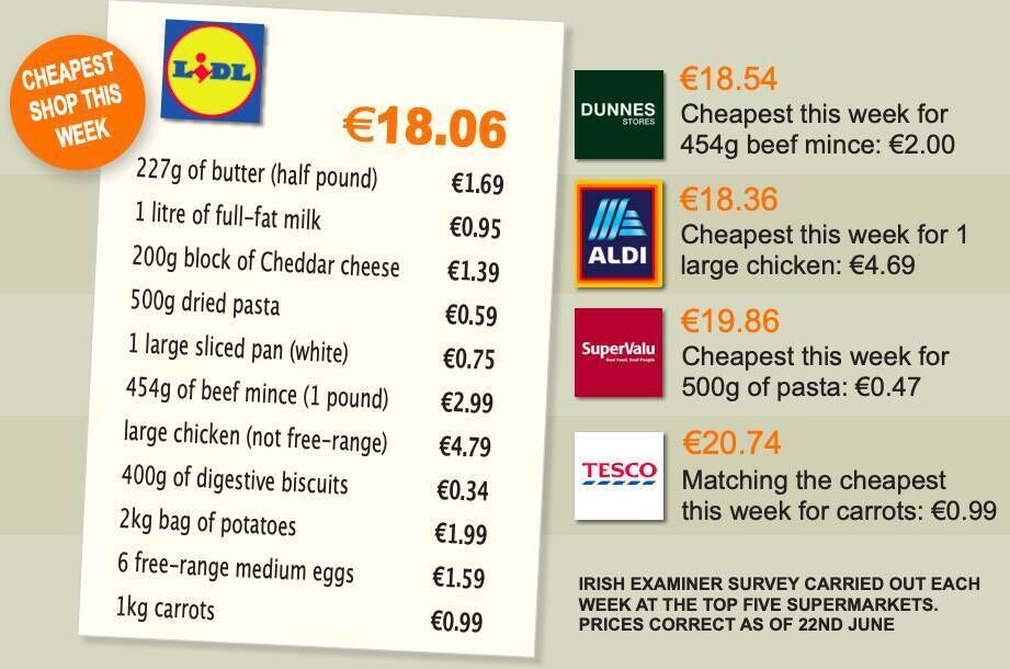 Once again Lidl is the cheapest in my shopping basket survey.