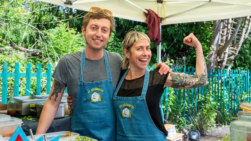 Wayne Dunle and Virginia O’Gara from ‘My Goodness’ foods. O'Gara has been working on the Cork Urban Soil Project, which today received an award. Picture. John Allen