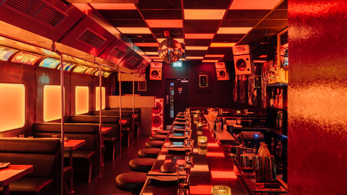 Once you go through the curtain you will find a mash-up of Tokyo subway car, Blade Runner diner and Chinatown anywhere dive bar with lots of neon and possibly a DJ spinning vinyl (depending on the time of week).