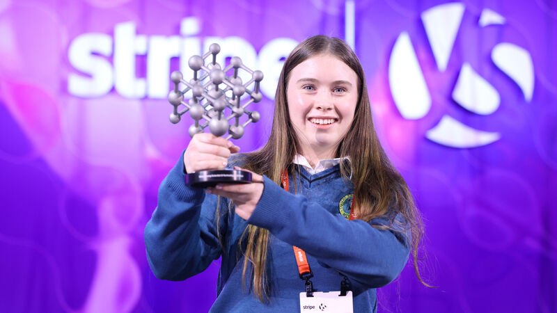 Young Scientist winner Aoibheann Daly from Mercy Mounthawk Secondary School with the trophy for her brain cancer diagnosis tool which uses AI at the Stripe Young Scientist Exhibition in the RDS last week. If a 15-year-old can make AI for good only, it’s time certain other people grew up. Photo: Leah Farrell/© RollingNews.ie