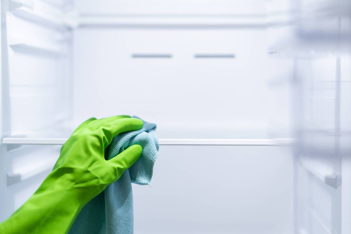 If you notice some tougher, caked-in residue in your fridge — apply the same mixture as above liberally to the problem area with a wet towel.