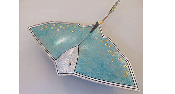 Sting Ray by Thomas Wollen, €250, which will be part of the Shoals and Waves on the Wild Atlantic Way exhibition, next Saturday at 6.30pm at Etain Hickey Collections in Clonakilty. The exhibition will feature, among others, Sinead Glynn, Angela Cuthill Jewellery, Roisin Ni Chionnfhaolaidh Glass, Paddy McCormack Metalwork, Thomas Wholen Ceramics, Anne Harrington-Rees Textiles, Marleen Drijkoningen Willow Weaving and Jim Turner Ceramics, as well as Etain’s own works.