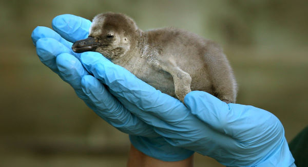 The chick was abandoned by its parents while still in the egg, but some foster parents stepped in to incubate and look after the egg until it hatched to become the first Humboldt penguin born at the park in two years.
