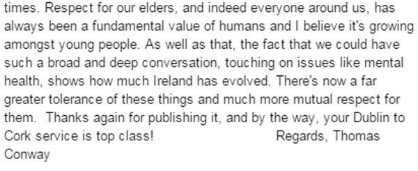 He even complimented Irish Rail on their service.