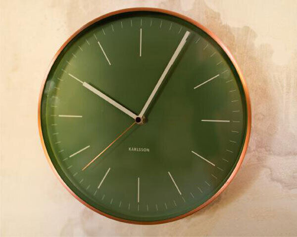 This elegant moss green Karlsson clock, belted in a slim frame of copper, arrives in store right on time for autumn from Harvey Norman, €64.95
